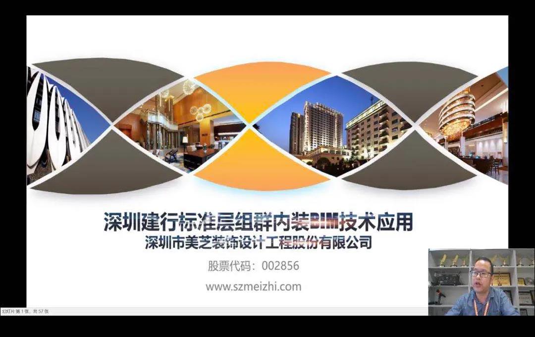 2020年10月15日,美芝股份研究院副院長廖世剖先生應(yīng)邀參加由中國建筑裝飾協(xié)會工業(yè)和信息化分會、中國建筑裝飾知行學(xué)院聯(lián)合主辦的數(shù)字裝飾線上直播,分享題為《深圳建行標(biāo)準(zhǔn)層組群內(nèi)裝BIM應(yīng)用介紹》。
